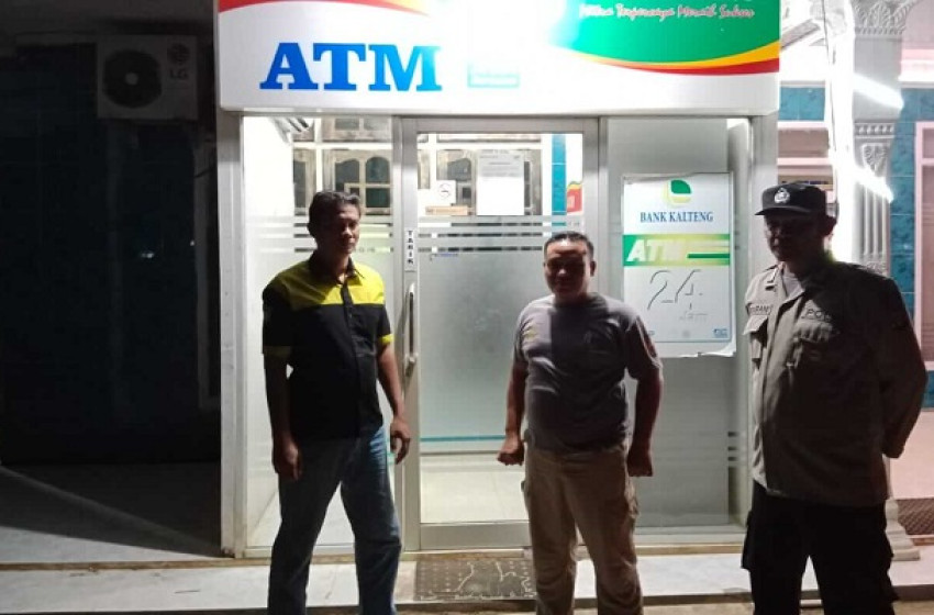 Anggota Polsek Seruyan Tengah Cek Mesin ATM Bank Kalteng