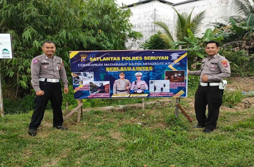 Satlantas Polres Seruyan Pasang Spanduk Himbauan Tertib Berlalu Lintas