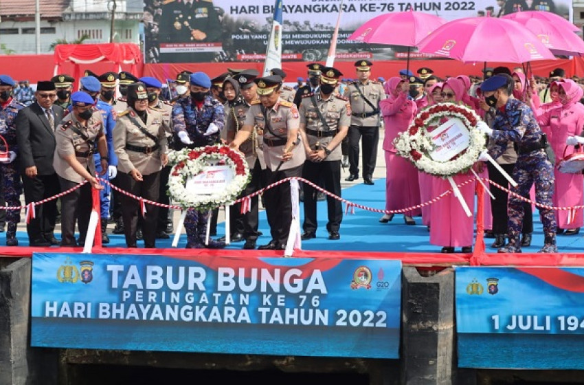 Rangkaian HUT Bhayangkara Polda Kalteng Tabur Bunga Di Pelabuhan Panglima Utar Kumai