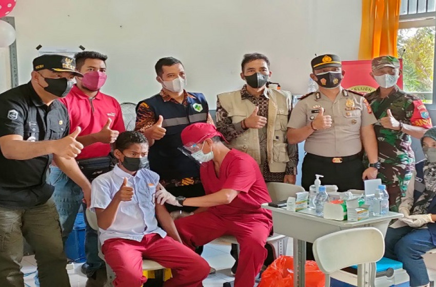 Polsek Seruyan Hilir Lakukan Pengamanan Vaksinasi di SMP 2 Bina Bangsa STP II