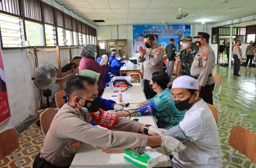 Kapolres Seruyan Tinjau Pelaksanaan Vaksinasi Booster Serentak Di SMAN 1 Kuala Pembuang