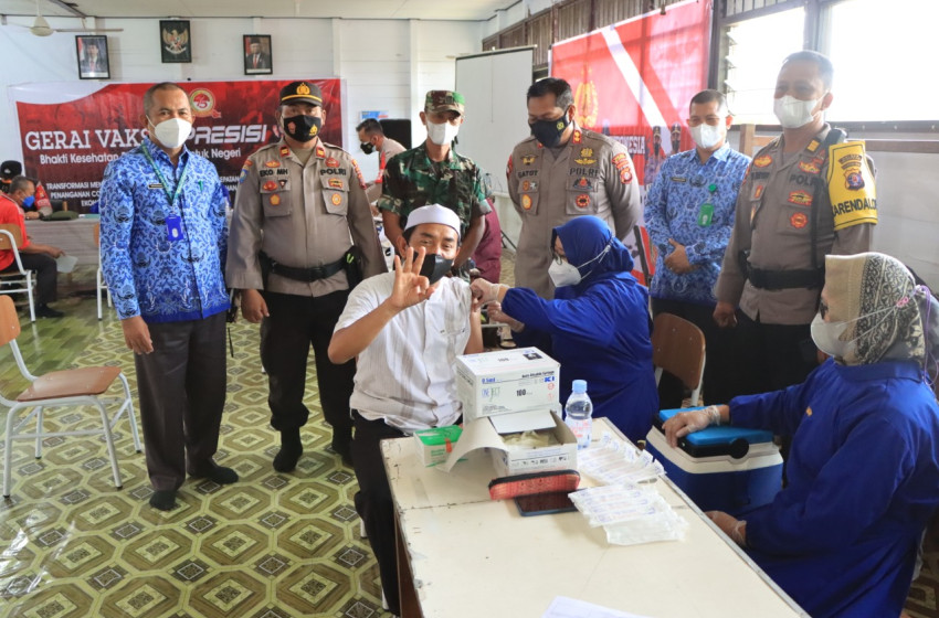 Kapolres Seruyan Menyemangati Masyarakat Yang Ikut Vaksinasi Serentak Di SMAN 1 Kuala Pembuang