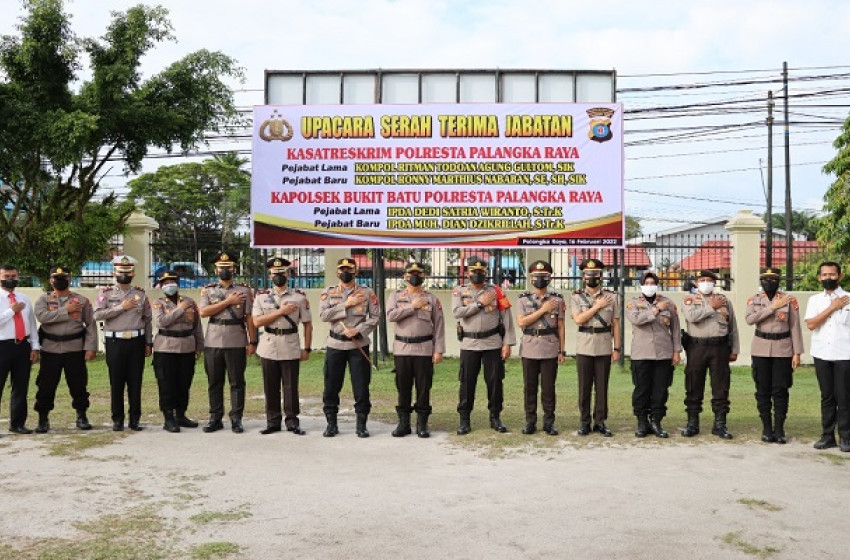 Kasat Reskrim Polresta Palangka Raya dan Kapolsek Bukit Batu Laksanakan Serah Terima Jabatan