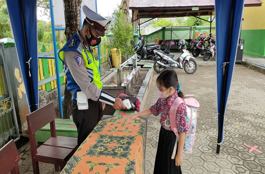 Satlantas Polres Seruyan Awasi Prokes di SDN 1 Kuala Pembuang 2