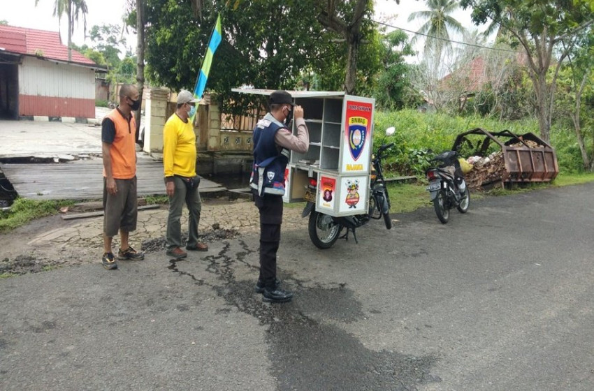 Pemberian kendaraan roda dua multifungsi ini dimanfaatkan oleh Banit Sat Binmas Polres Seruyan Bripda Isma riski saputra dengan membawa buku pelajaran untuk warga menambah pengetahuan.