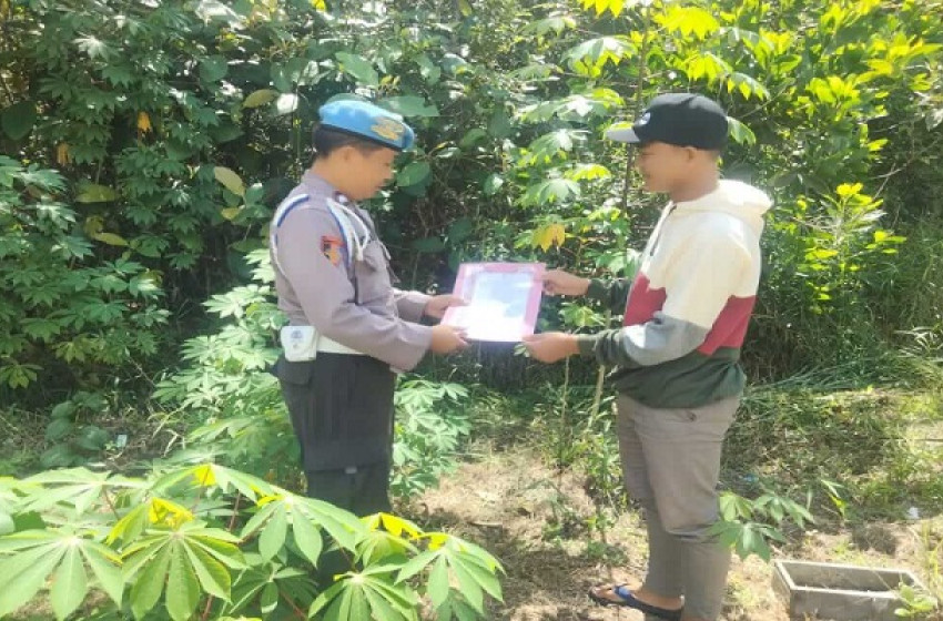 Personil Polsek Danau Sembuluh saat mensosialisasikan maklumat Kapolda Kalteng terkait karhutla