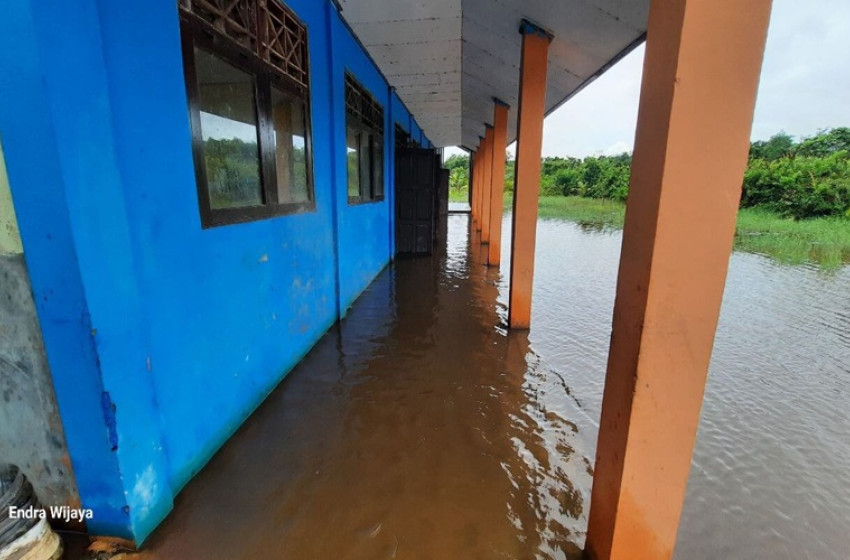 Banjir rob di SDN Kunjung Lampuyang, Kecamatan Teluk Sampit, Kabupaten Kotawaringin Timur (Kotim), Kalteng. (Foto BPDD Kottim)
