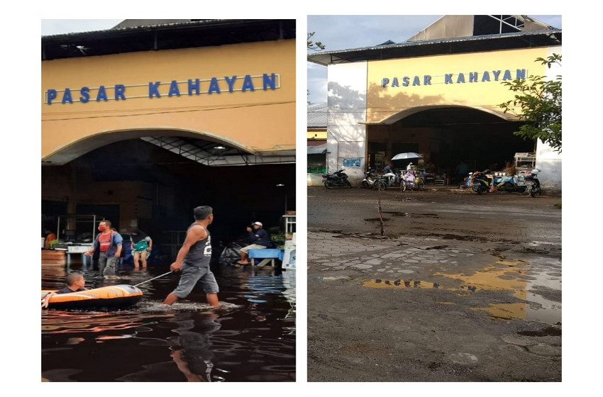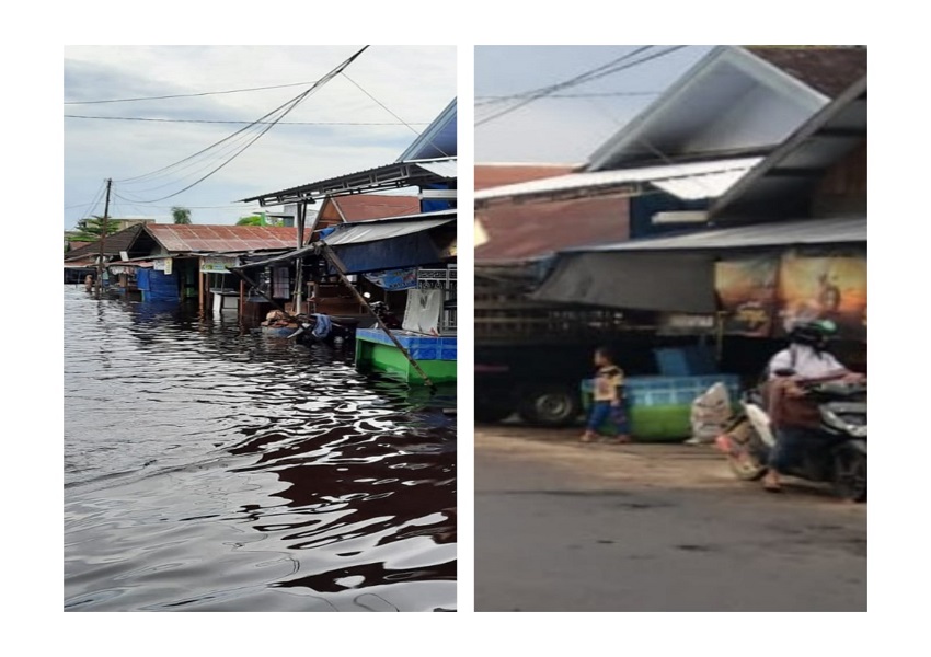 Kondisi Pasar Kahayan saat banjir (18/11/2021) dan saat kering (surut ) Senin (22/11/2021)