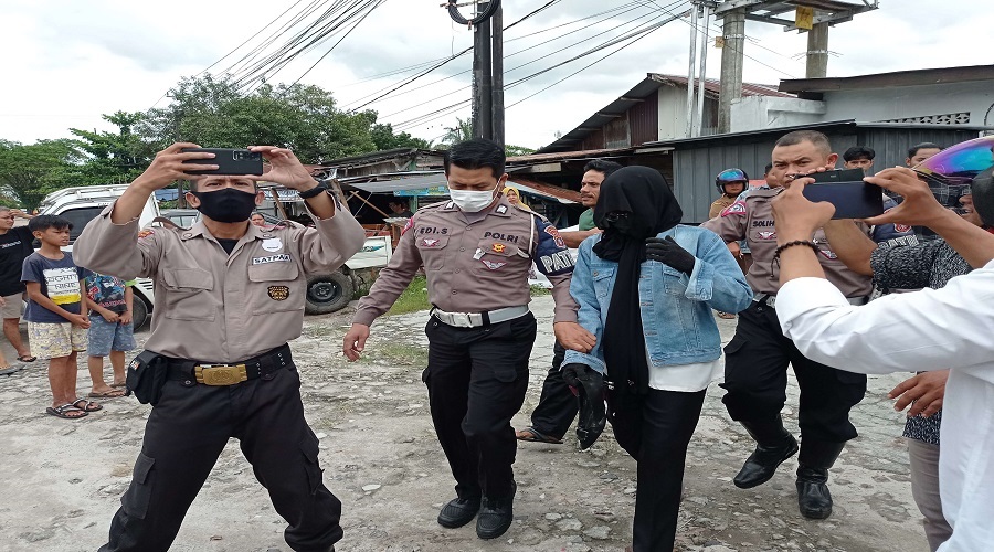 Pelaku saat ditangkap polisi dan masyarakat usai melakukan aksinya, Selasa, 4/4/2022 (Ist)