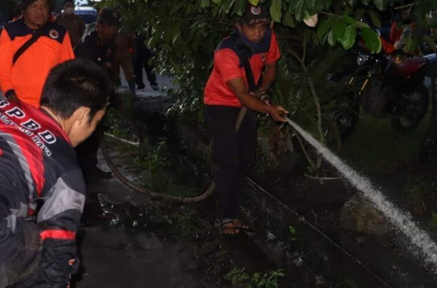 Tim gabungan kemudian membersihkan material di aliran parit dan gorong-gorong menggunakan cangkul serta melakukan penyemprotan air untuk membersihkan sisa material sehingga drainase tidak tersumbat lagi, ujarnya.