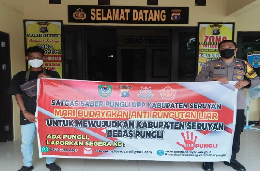 Kapolres Seruyan AKBP Gatot Istanto, S.I.K. melalui Kapolsek Seruyan Hilir IPDA Robby Sandrajaya, S.E., M.M., mengatakan “,Kami Mengajak warga ikut mengawasi pelayanan publik dan ikut serta memerangi pungli, salah satunya dengan tidak melakukan pembayaran yang tidak sah atau yang tidak sesuai dengan peraturan perundang-undangan, Kami juga menyampaikan tentang adanya satgas saber Pungli Kabupaten Seruyan yang diketuai Oleh Wakapolres Seruyan.