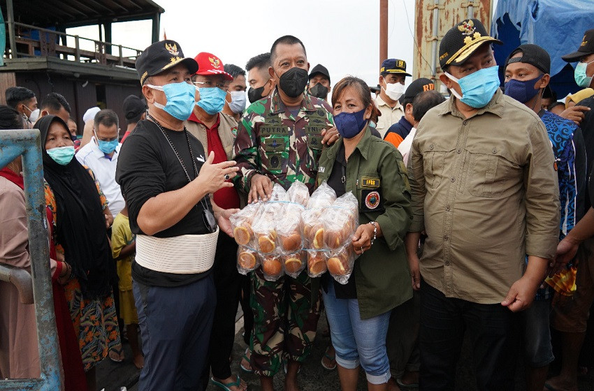 Komandan Korem 102/Pjg, Brigjen TNI Yudianto Putrajaya, S.E., M.M. mendampingi Gubernur Kalteng Sugianto Sabran dan Wagub Edy Pratowo saat meninjau banjir di pelabuhan Rambang, kelurahan Pahandut, Kecamatan Pahandut, Palangka Raya, (Jumat, 19/11/2021).
