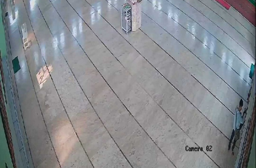 Saat diperiksa melalui rekaman kamera pengawas, terlihat seorang pria mengenakan jaket jeans, celana hitam dan tas coklat, masuk ke dalam masjid.