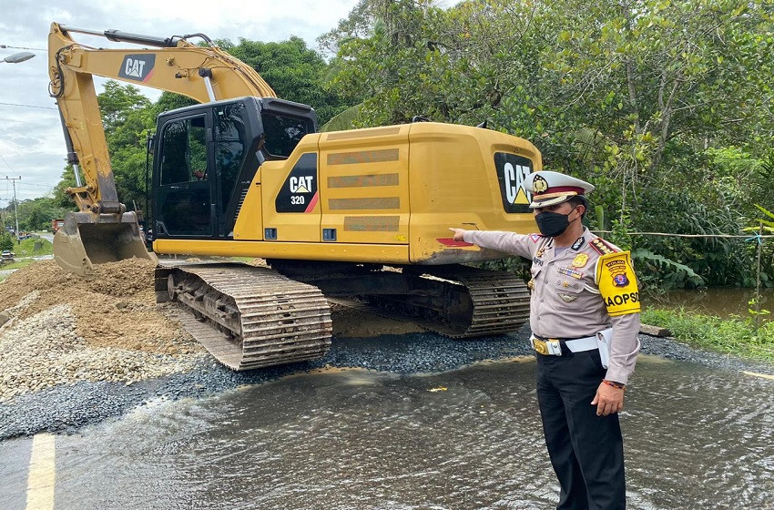 “Kami sudah berkoordinasi dengan Dinas PU. Dan sekarang sedang dilakukan perbaikan jalan menggunakan alat berat,” kata Direktur Lalu Lintas Polda Kalteng Kombes Pol Rifki, S.I.K, saat meninjau secara langsung lokasi jalan yang mengalami kerusakan dan ambles akibat banjir, Senin (15/11/2021) seperti dalam keterangan tertulis humas Polda Kalteng .