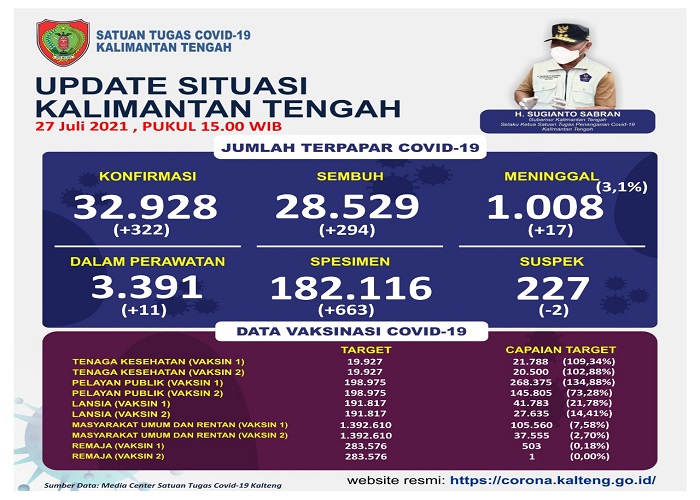 Ini data detail perkembangan kasus virus Corona, Selasa (27/7/2021) di Kalteng:
