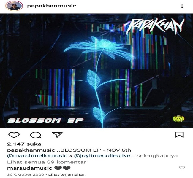 Papa Khan menjadi salah satu musisi EDM asal Indonesia pertama yang berhasil rilis di label musik milik Marshmello. Lagu-lagunya yang berhasil rilis di Joytime Collective adalah Rain, Blossom, Diary of a Poor Kid, serta Utopia.