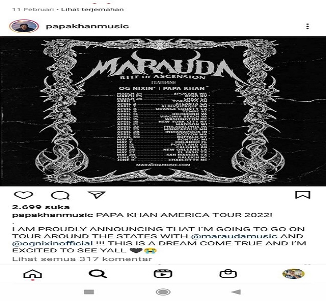 Papa Khan mengumumkan jadwal tur yang akan dilakoninya itu dalam akun instagram miliknya @papakhanmusic.