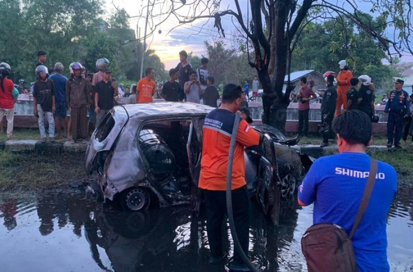 Pihaknya menduga pengemudi sempat berusaha mengendalikan situasi dengan menabrakkan mobil ke pohon di tepi jalan. Langkah ini kemungkinan diambil untuk mencegah ledakan lebih besar dan menghindari jatuhnya korban.