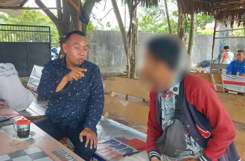 Korban saat curhat bersama Ketua Tim Virtual Police Polda Kalteng, Ipda H Shamsuddin. di Palangka Raya
