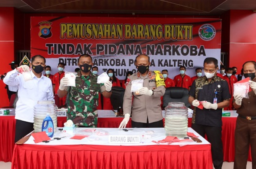 Kapolda Kalteng Irjen Pol. Drs. Nanang Avianto, saat pemusnahan barang bukti narkoba di Mapolda Kalteng, Rabu (29/12/2021) menjelaskan, pengungkapan kasus narkoba tersebut berasal dari empat wilayah yaitu Kota Palangka Raya sebanyak tiga kasus dengan empat orang tersangka dan barang bukti Sabu sebanyak 745,55 gram.
