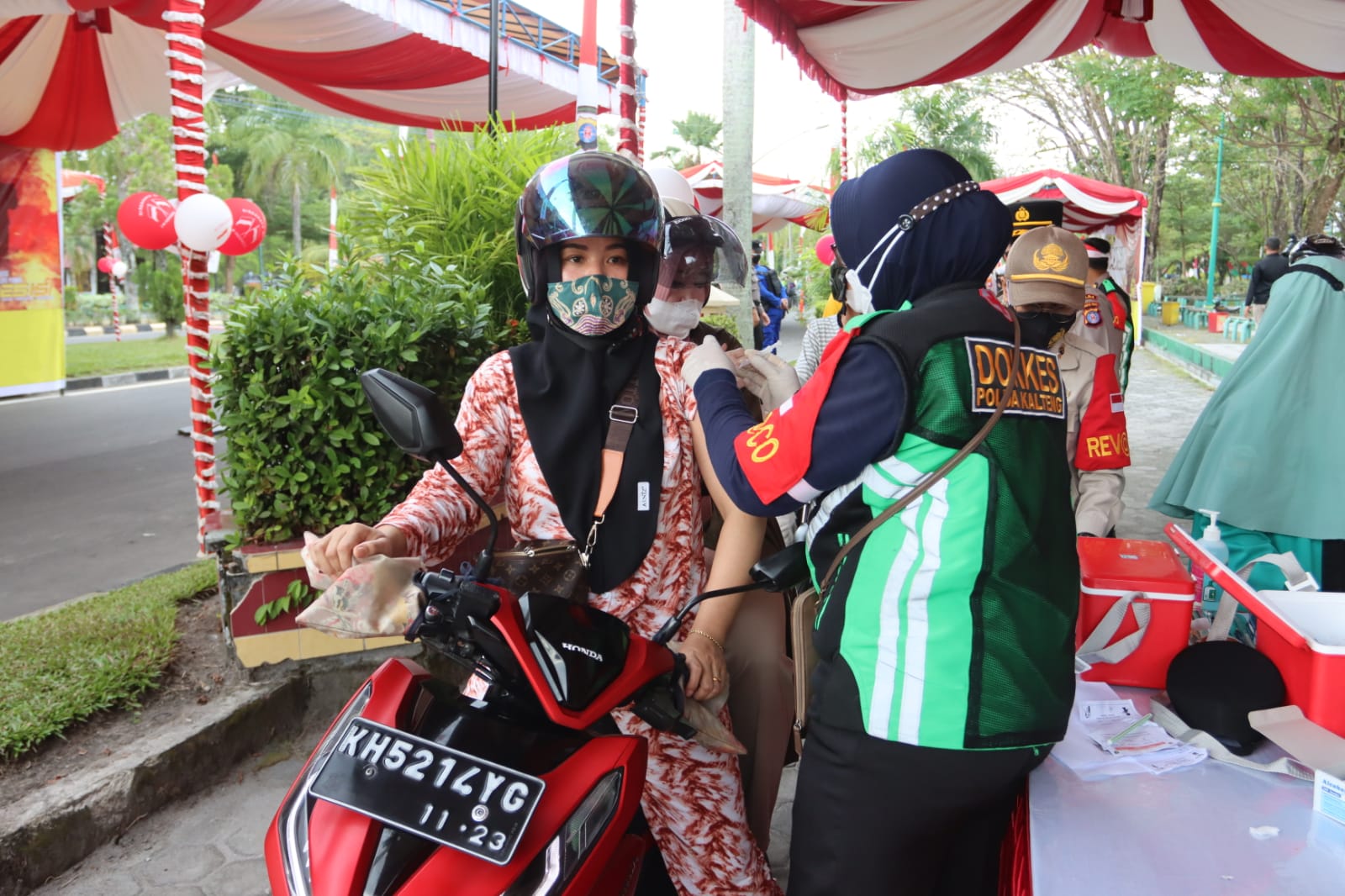 Palangka Raya - Sebanyak 6 ribu warga Kalteng melaksanakan vaksinasi secara drive thru yang digelar oleh Polda Kalteng, serentak bersama jajarannya di daerah , Kamis (12/8/2021) pagi.