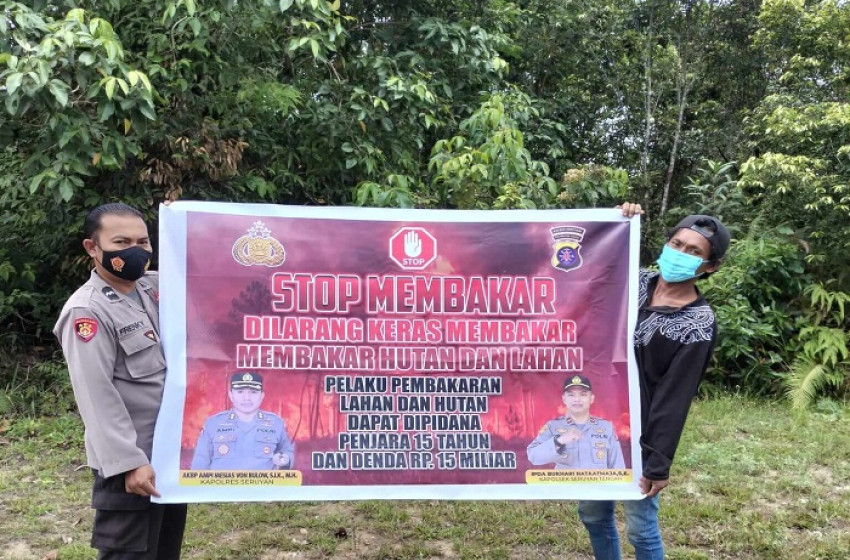 kontenkalteng.com , Seruyan - Polsek Seruyan Tengah, Polres Seruyan jajaran Polda Kalteng terus menghimbau khususnya kepada seluruh masyarakat Kecamatan Seruyan Tengah untuk tidak membuka lahan atau kebun dengan cara membakar.