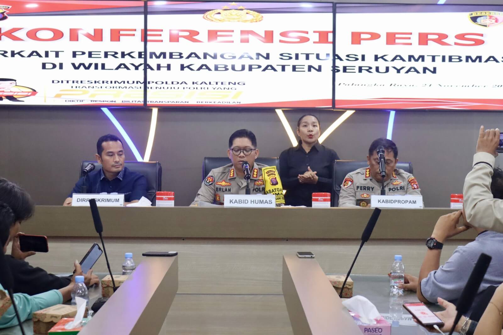 Kabid Humas Polda Kalteng Kombes Erlan Munaji saat memberikan keterangan kepada wartawan, Jumat (24/11/2023)