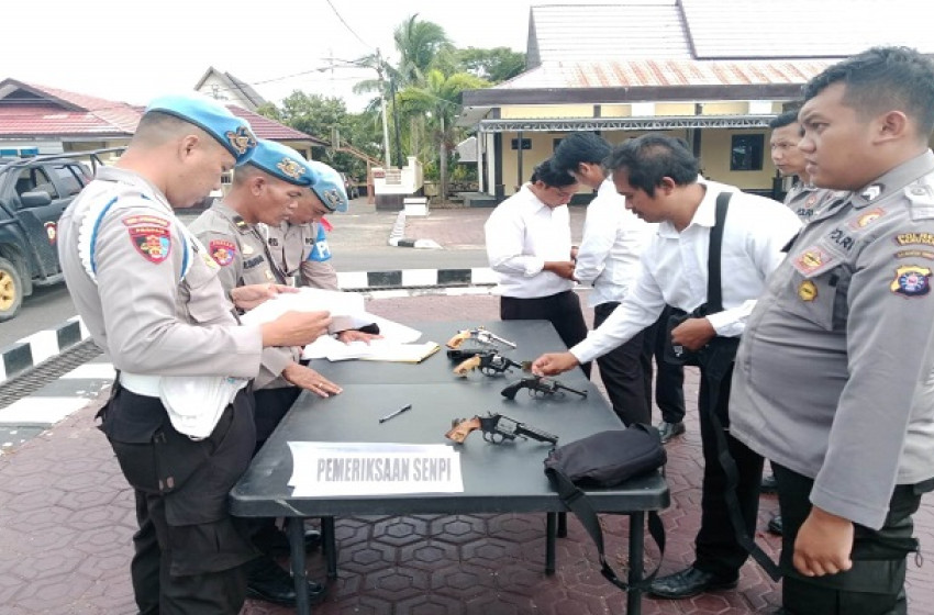 SERUYAN - Propam Polres Seruyan laksanakan pengecekan terhadap senpi inventaris dinas personil didepan Mapolres Seruyan Polda Kalteng. Kamis(22/12/2022).