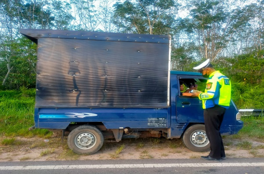 SERUYAN - Sat Lantas Polres Seruyan bersama Dinas Perhubungan Kabupaten Seruyan sosialisasi penertiban terhadap kendaraan ODOL ( Over Dimension Over Loading ).