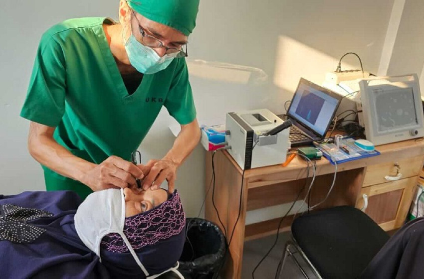Seorang dokter saat melakukan oeprasi katarak kepada warga (Ist)