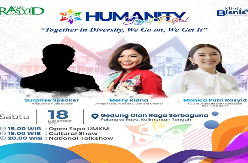 Monica Putri Rasyid, CEO Abdul Rasyid Foundation dan Klinik Bisnis menyampaikan Humanity Biggest Festival ini merupakan momentum strategis untuk memperkenalkan dan mempromosikan potensi budaya dan produk-produk unggulan daerah Kalimantan Tengah secara luas, baik skala nasional bahkan internasional.
