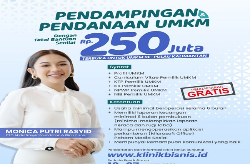 Klinik Bisnis merupakan platform dibawah naungan Abdul Rasyid Foundation kini kembali membuka kesempatan lebih luas untuk menjadi mitra Klinik Bisnis melalui pendaftaran Mitra UMKM Se-Kalimantan.