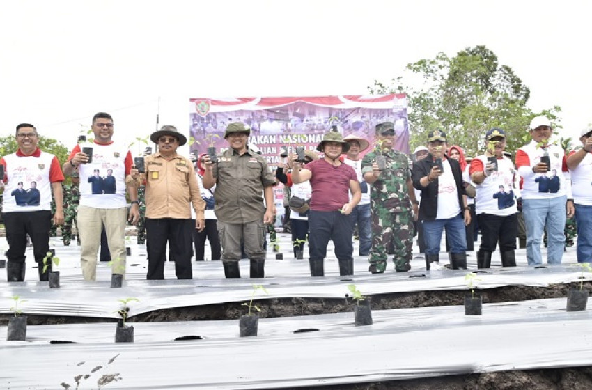 Gubernur Kalteng H. Sugianto Sabran dan unsur Forkopimda saat penanaman cabai dan bawang merah