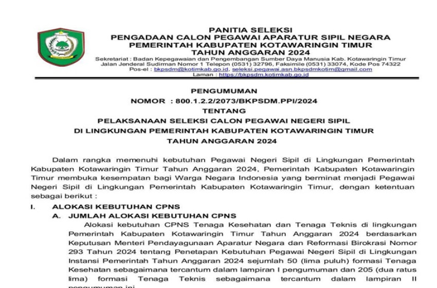 Pemkab Kotim Buka Rekrutmen CPNS Tahun Anggaran 2024