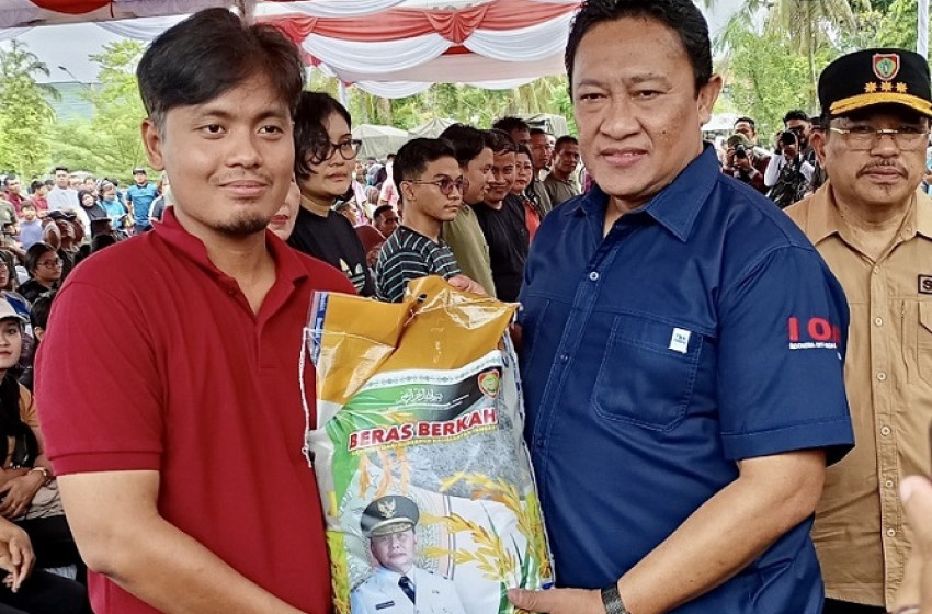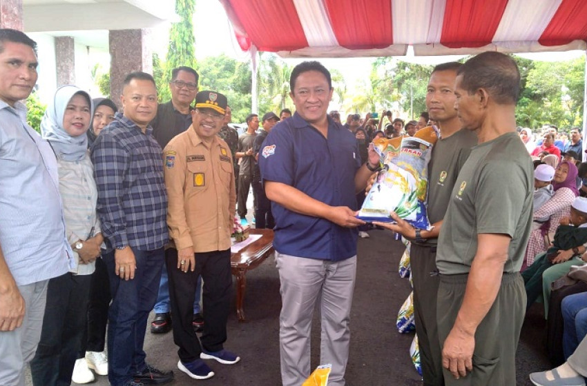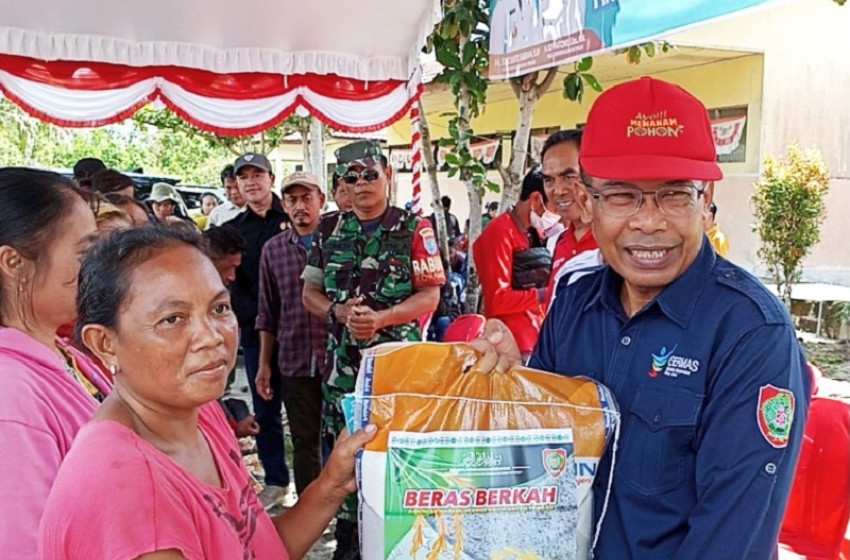 Plh Asisten Pemkesra Herson B Aden Wakili Gubernur Salurkan 10 Ton Beras Murah ke Desa Tewai Baru, Gumas