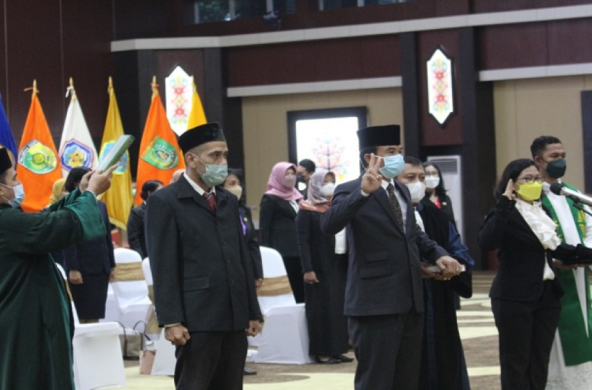 PALANGKA RAYA - Pj. Sekretaris Daerah Provinsi Kalteng H. Nuryakin atas nama Gubernur Kalteng H. Sugianto Sabran melantik 402 Pejabat Administrasi di lingkungan Pemprov Kalteng ke dalam Jabatan Fungsional, di Aula Jayang Tingang, Kantor Gubernur Kalteng, Jumat (11/2/2022). Acara ini berlangsung secara Hybrid.