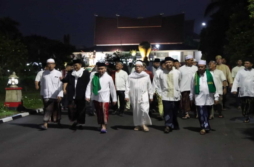 Gubernur Kalteng Sugianto Sabran dan sejumlah pejabat Pemprov Kallteng nampak jalan kaki usai sholat subuh berjemaah.