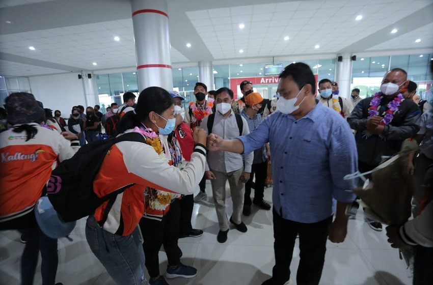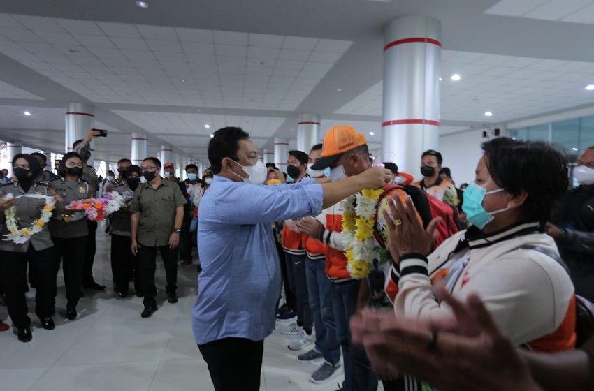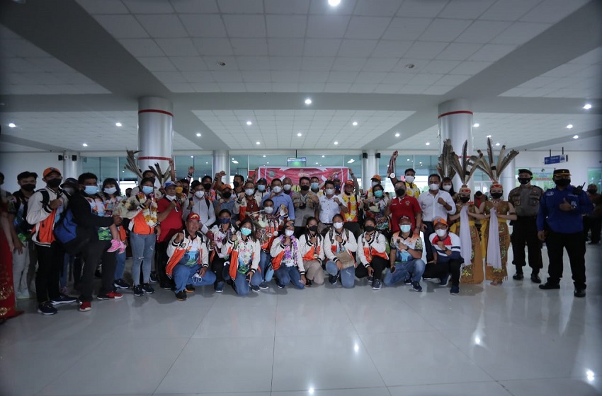 Wagub Kalteng Edy Pratowo saat menerima kedatangan atlet dayung Kalteng , Minggu (17/10/2021) Foto : ADC Wagub Kalteng