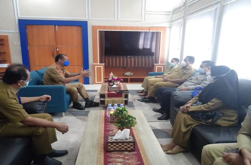Kepala Dinas Kelautan dan Perikanan (Dislutkan) Provinsi Kalteng H. Darliansjah menerima kedatangan Kepala Dinas Perikanan (Diskan) Kabupaten Kotawaringin Barat (Kobar) Hepy beserta rombongan, di aula dinas setempat, Selasa (15/2/2022) pagi.