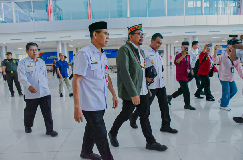 Kedatangan Wakil Kepala Staf Kepresidenan disambut oleh Staf Ahli Gubernur Bidang Kemasyarakatan dan Sumber Daya Manusia (SDM) Hamka didampingi Wakil Wali Kota Palangka Raya Achmad Zaini, di Terminal Umum Bandara Tjilik Riwut Palangka Raya, Rabu (30/7/2025).