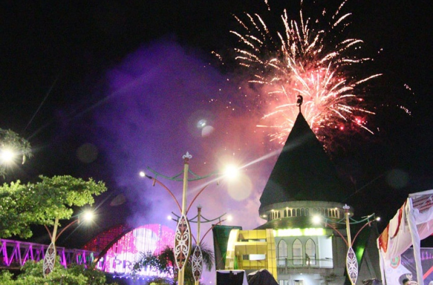 Launching Lampu Hias dan Air Mancur Jembatan Kahayan, ditandai dengan penekanan tombol sirene oleh Gubernur Kalteng H. Sugianto Sabran dan pementasan kembang api.