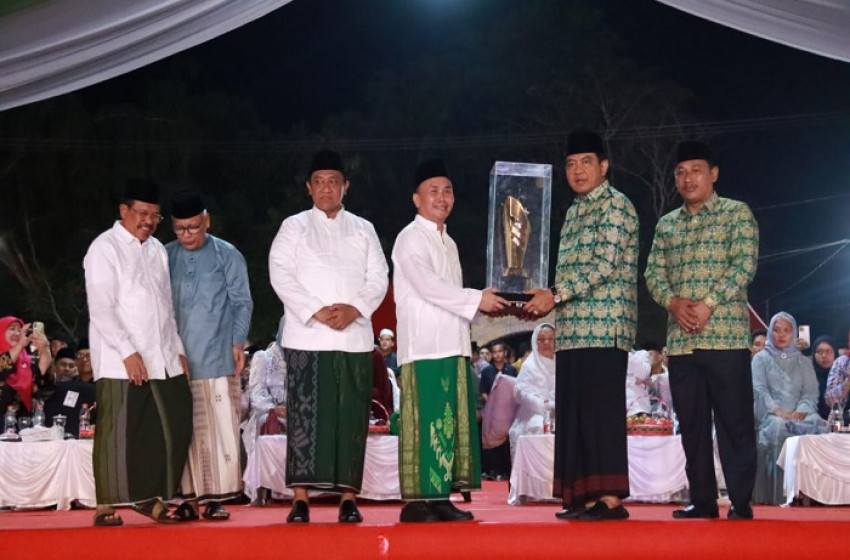 Gubernur Kalteng Sugianto Sabran saat menyerahkan piala kepada Ketua Panitia Penyelenggaran MTQH ke XXXI Tahun 2023 (dok. MMC Kalteng)
