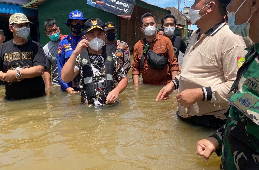 Gubernur kalteng Sugianto Sabran Saat meninjau banjir di desa Kuala Kuayan Kabupaten Kotim (Foto Diskominfosantik Kalteng)