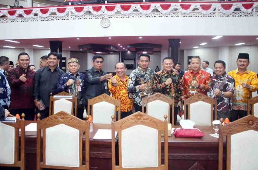 Kepala DLH Kalteng Joni Harta foto bersama usai menghadiri Rapat Paripurna