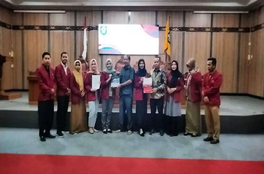 Foto - Mahasiswa dari Sekolah Tinggi Ilmu Hukum (STIH) Habaring Hurung Sampit, saat menyerahkan sumbangsih pemikiran terkait ranperda perpakiran kepada DPRD Kotim.(Ist)
