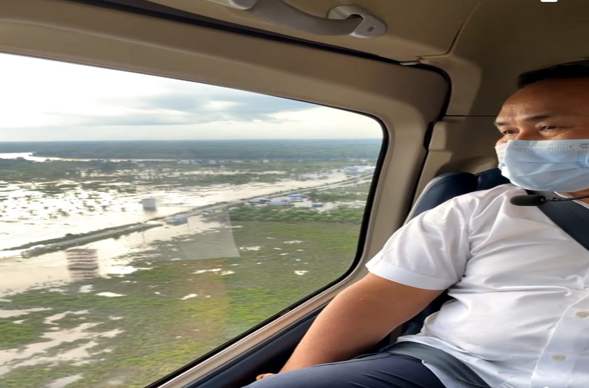 Gubernur Kalteng Sugianto Sabran saat memantau lewat udara kondisi banjir (Foto Diskominfosantik Kalteng)