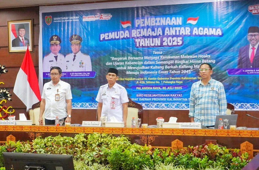 kontenkalteng.com, Palangka Raya – Pemerintah Provinsi Kalteng menggelar Kegiatan Pembinaan Pemuda Remaja Antar Agama yang berlangsung di Aula Eka Hapakat, Kantor Gubernur Kalteng, Rabu (30/7/2025).
