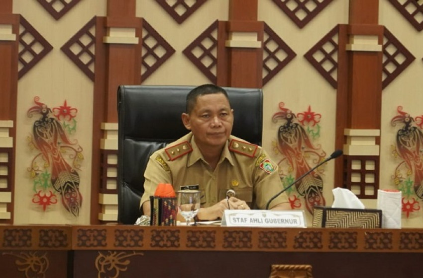 Staf Ahli Gubernur Kalteng Bidang Ekonomi, Keuangan, dan Pembangunan Yuas Elko saat menghadiri Rakor Pengendalian Inflasi Tahun 2023 secara virtual