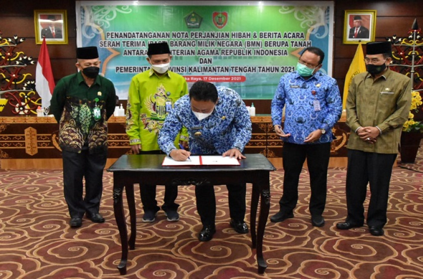 Pemerintah Provinsi (Pemprov) Kalteng dalam hal ini dilakukan Wakil Gubernur Kalteng H. Edy Pratowo atas nama Gubernur Kalteng H. Sugianto Sabran melakukan Penandatanganan Nota Perjanjian Hibah dan Berita Acara Serah Terima Hibah Barang Milik Negara berupa Tanah dari Kementerian Agama RI kepada Pemprov Kalteng Tahun 2021.