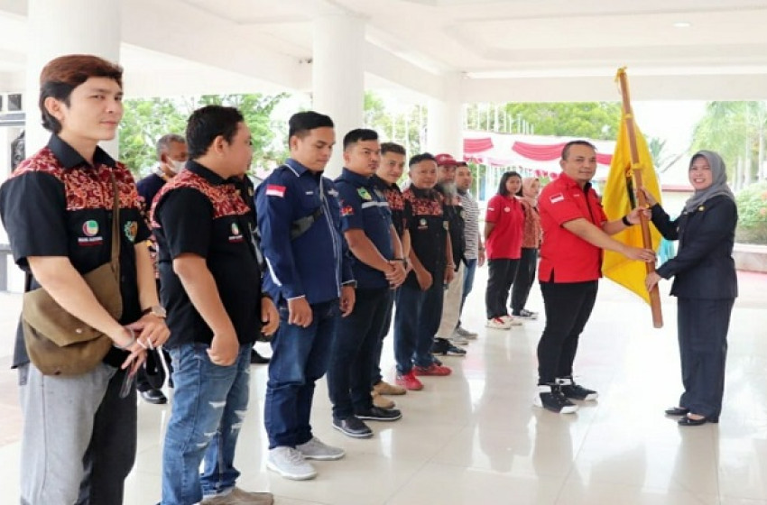 BUNTOK - Penjabat (Pj) Bupati Barito Selatan (Barsel), Lisda Arriyana, S,sos melepas kontingen dari Persatuan Wartawan Indonesia (PWI) setempat untuk mengikuti Pekan Olahraga Wartawan Nasional (Porwanas) ke 13 di Malang, Provinsi Jawa Timur (Jatim).